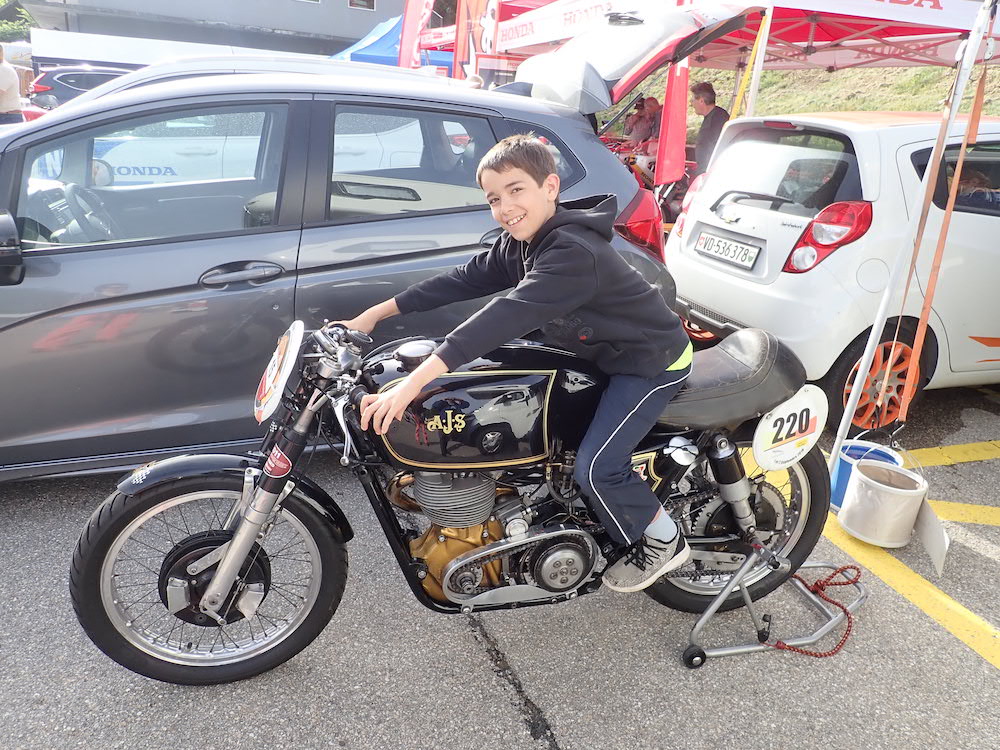 Mon jeune fils sur une superbe AJS de 1954 !
